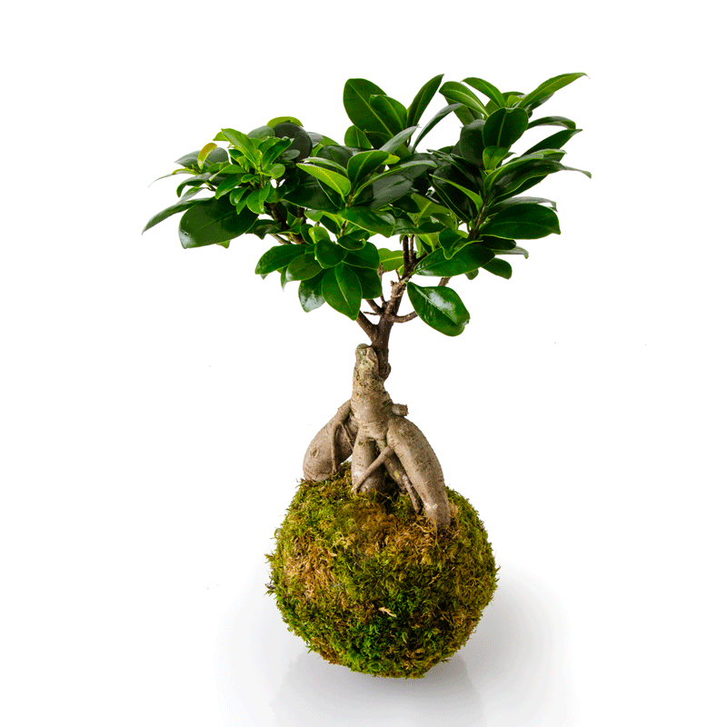 Le Ficus Ginseng se prête particulièrement bien à la technique japonaise du Kokedama. Ses racines surélevées et son port majestueux permettent une composition équilibrée et harmonieuse