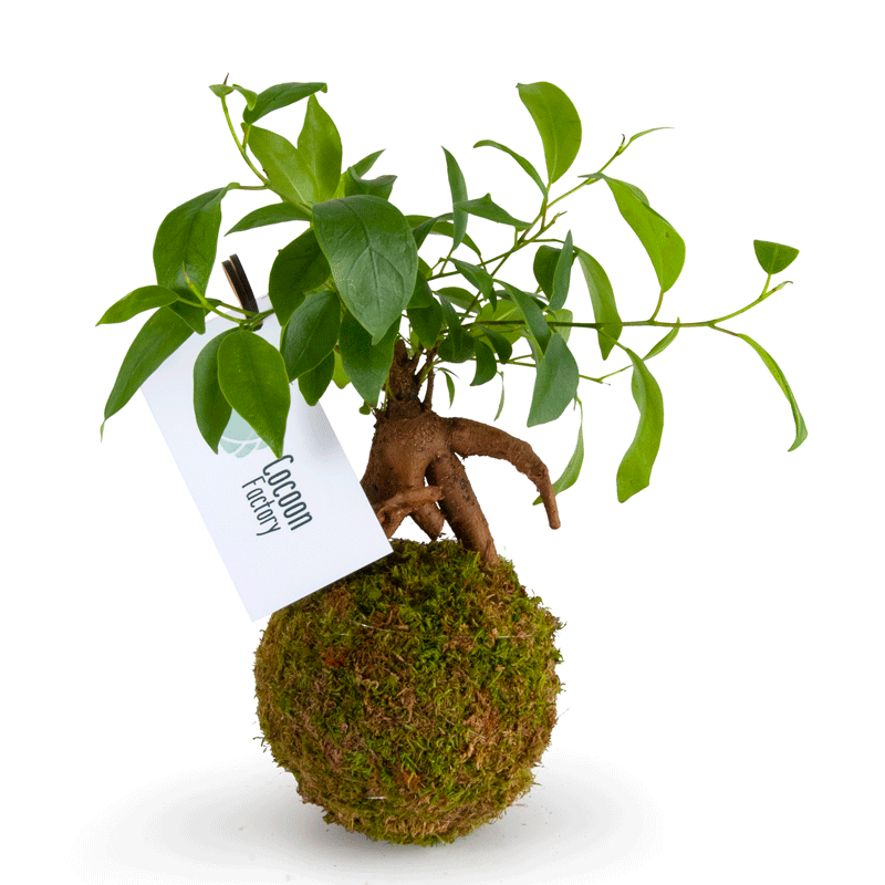 Le Ficus Ginseng se prête particulièrement bien à la technique japonaise du Kokedama. Ses racines surélevées et son port majestueux permettent une composition équilibrée et harmonieuse