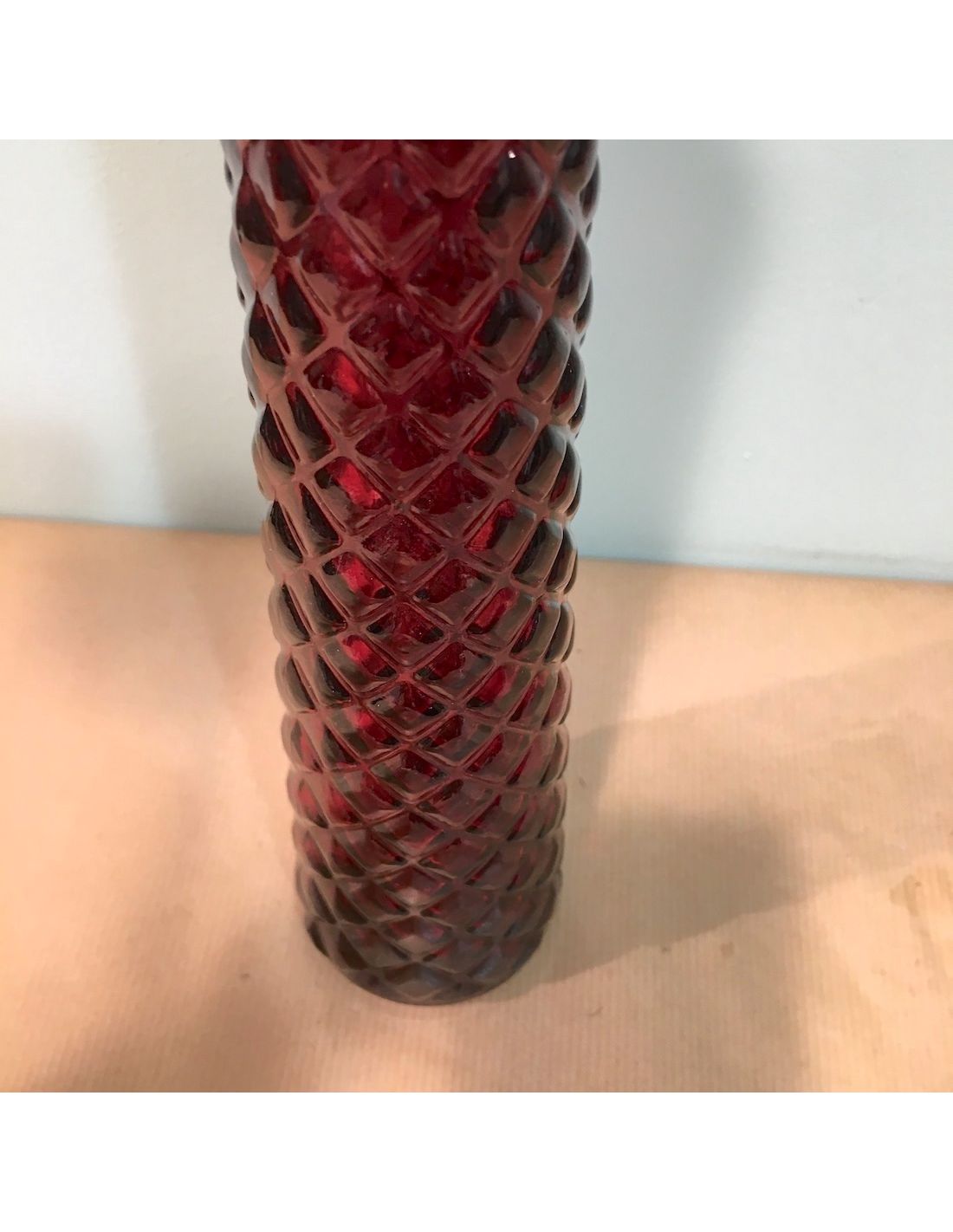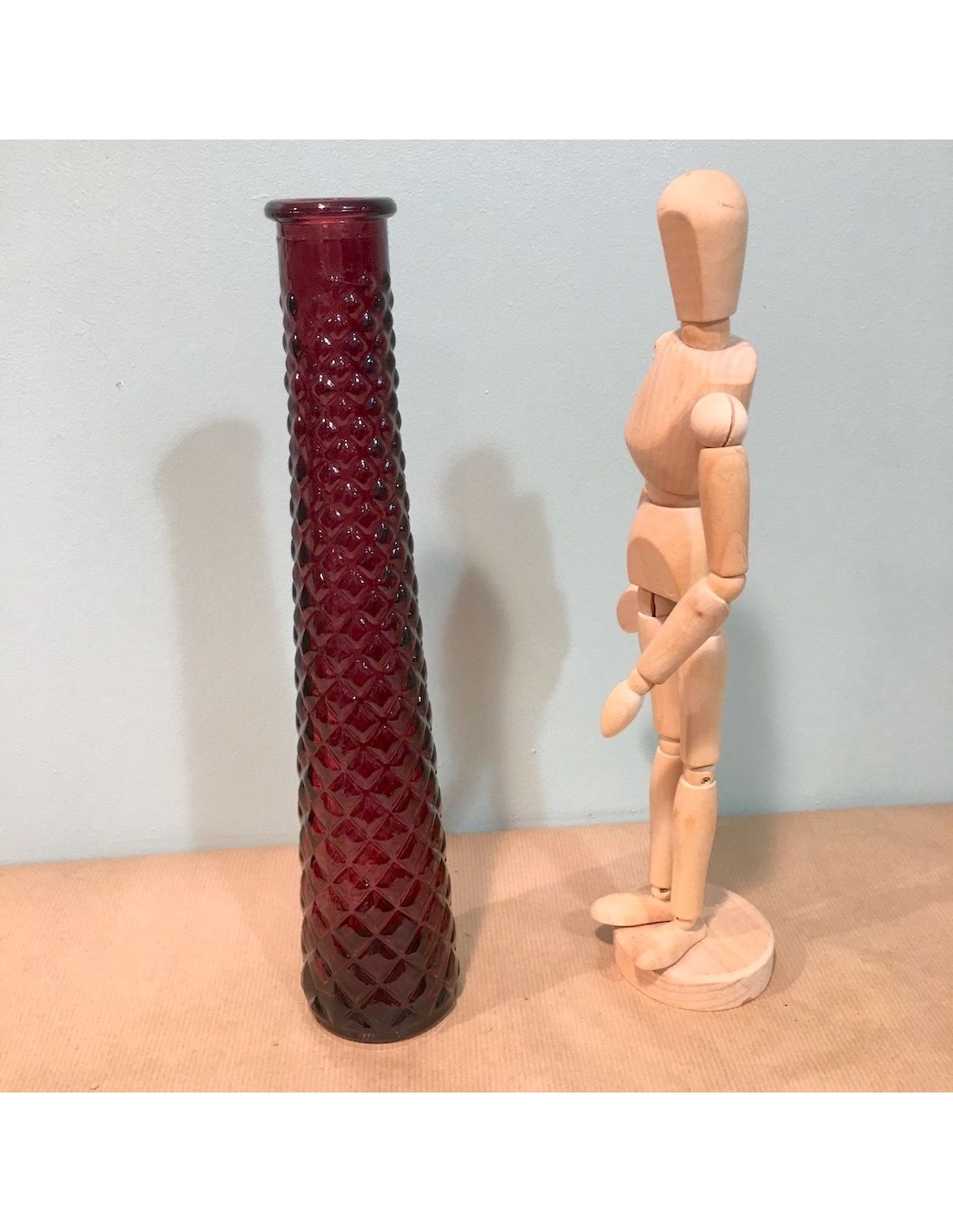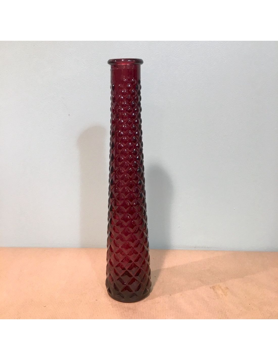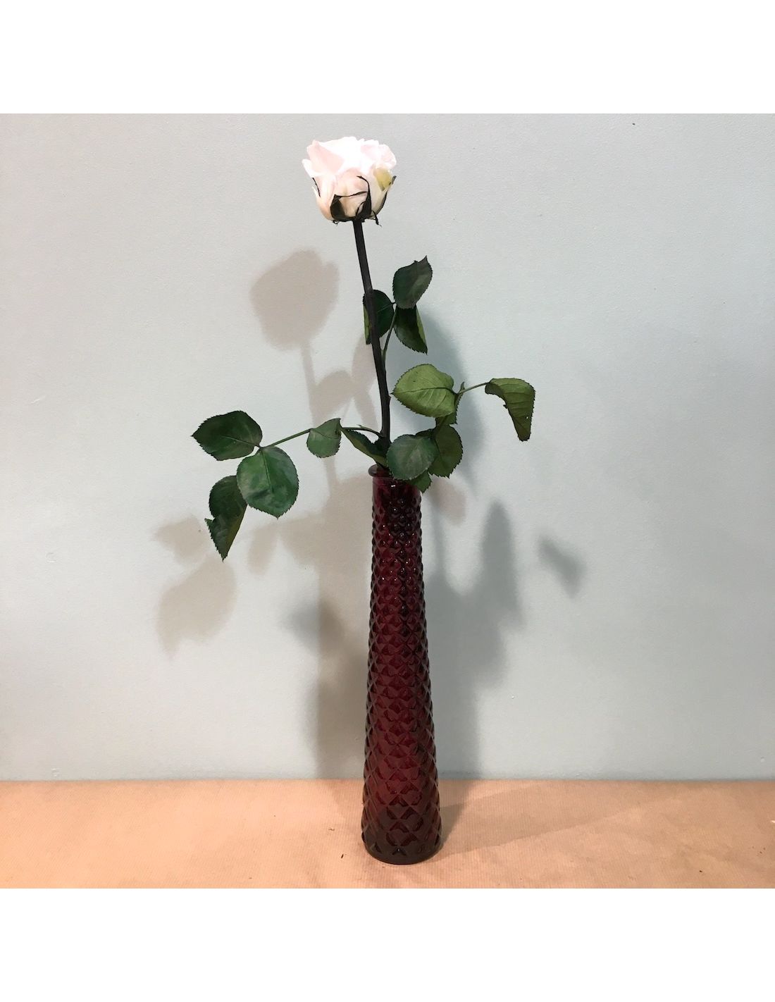 Ce soliflore est en verre transparent légèrement teinté rouge